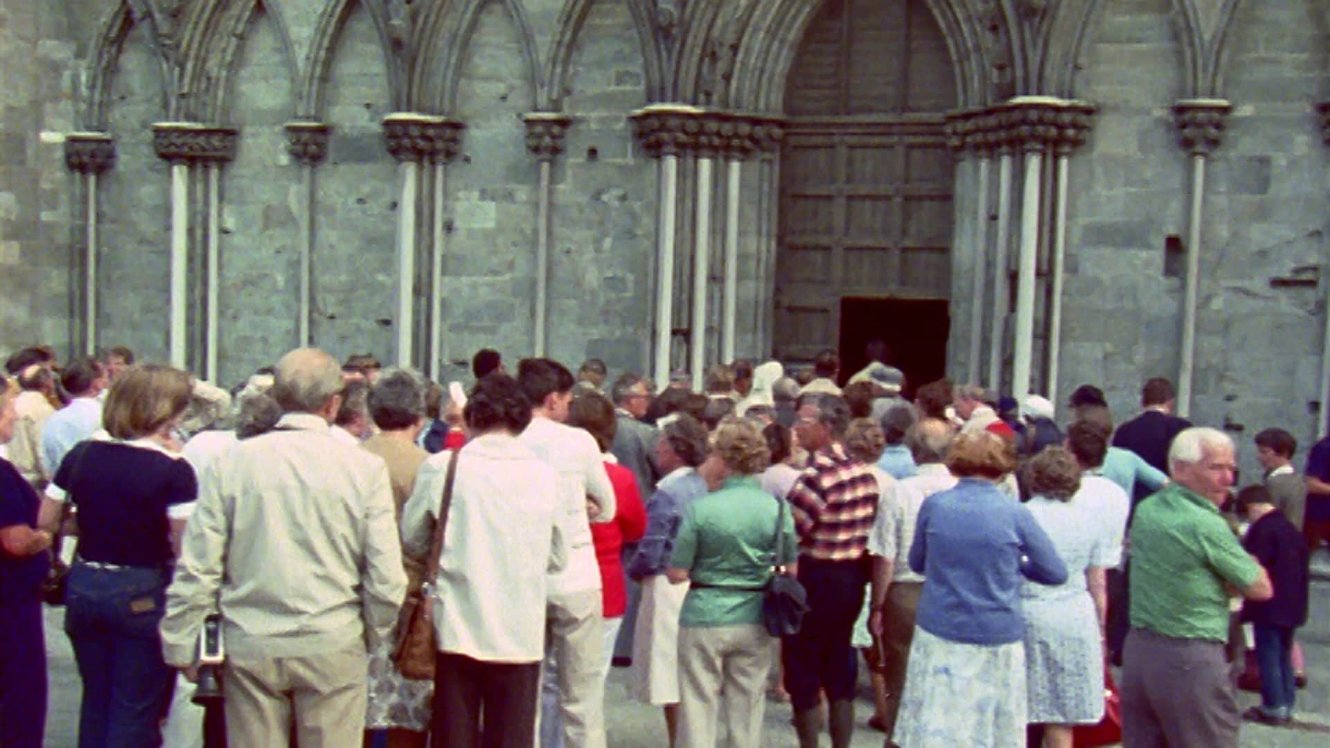 Sommerlig besøk i Nidarosdomen blant turister, omvisere og prester.
