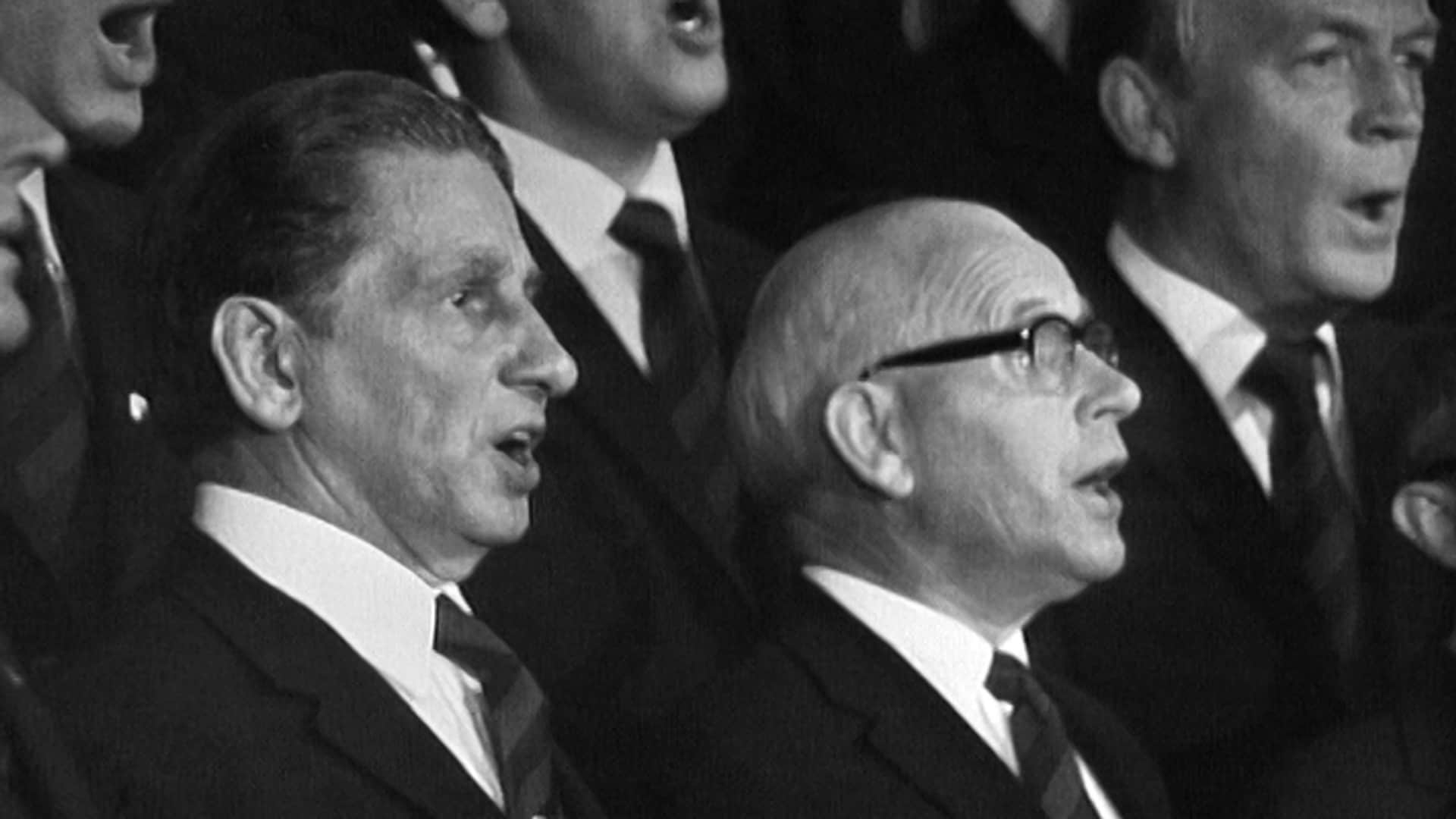 Konsert med Fana Mannskor på Stend jordbruksskule. På repertoaret står for det meste norsk musikk. Dirigent og programleder: Sigmund Skage.