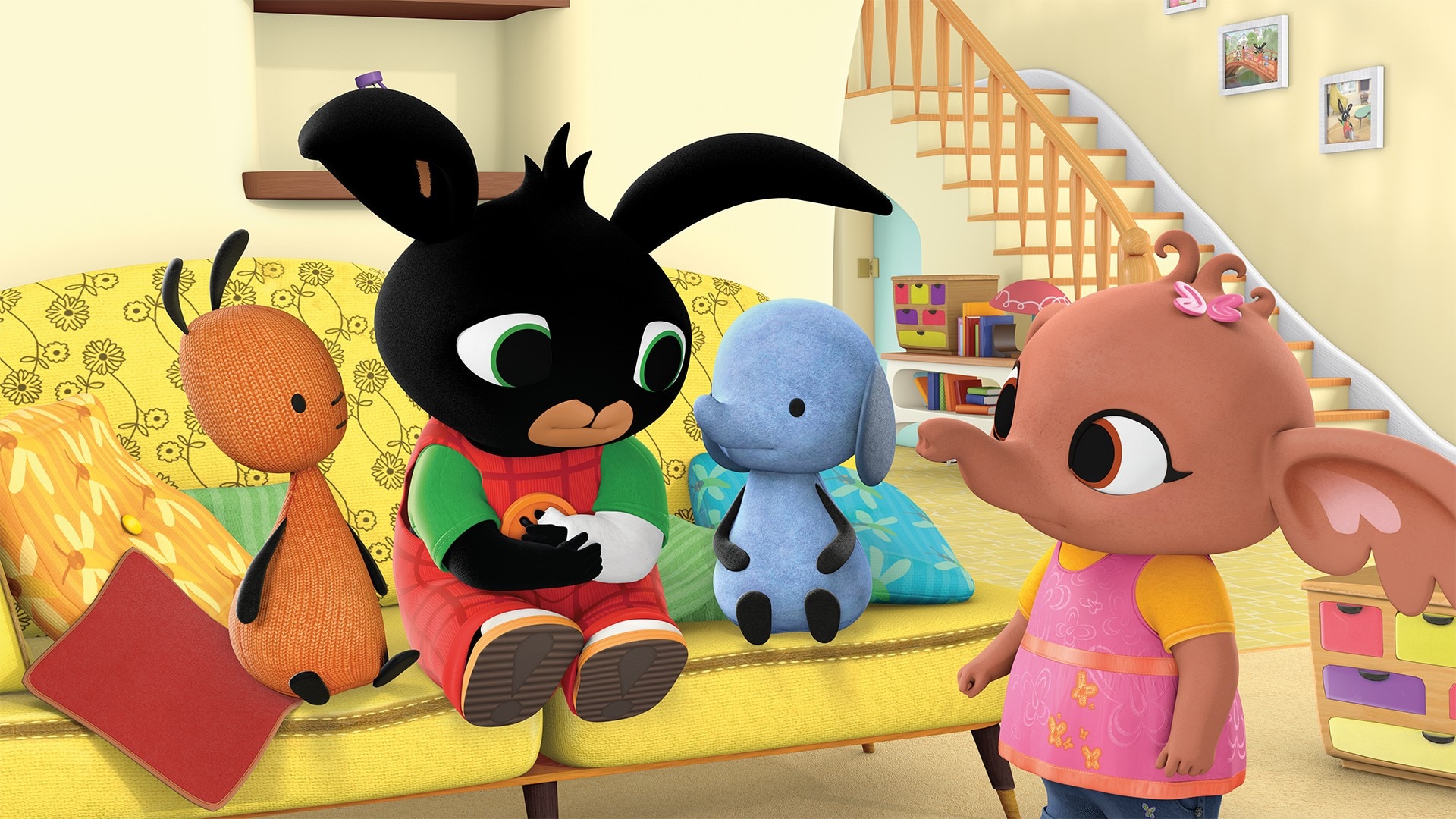 17. BallBing, Sulla og Pando leiar med ball i hagen. Bing sparkar ballen litt for langt og treff eit vindauge.7 min