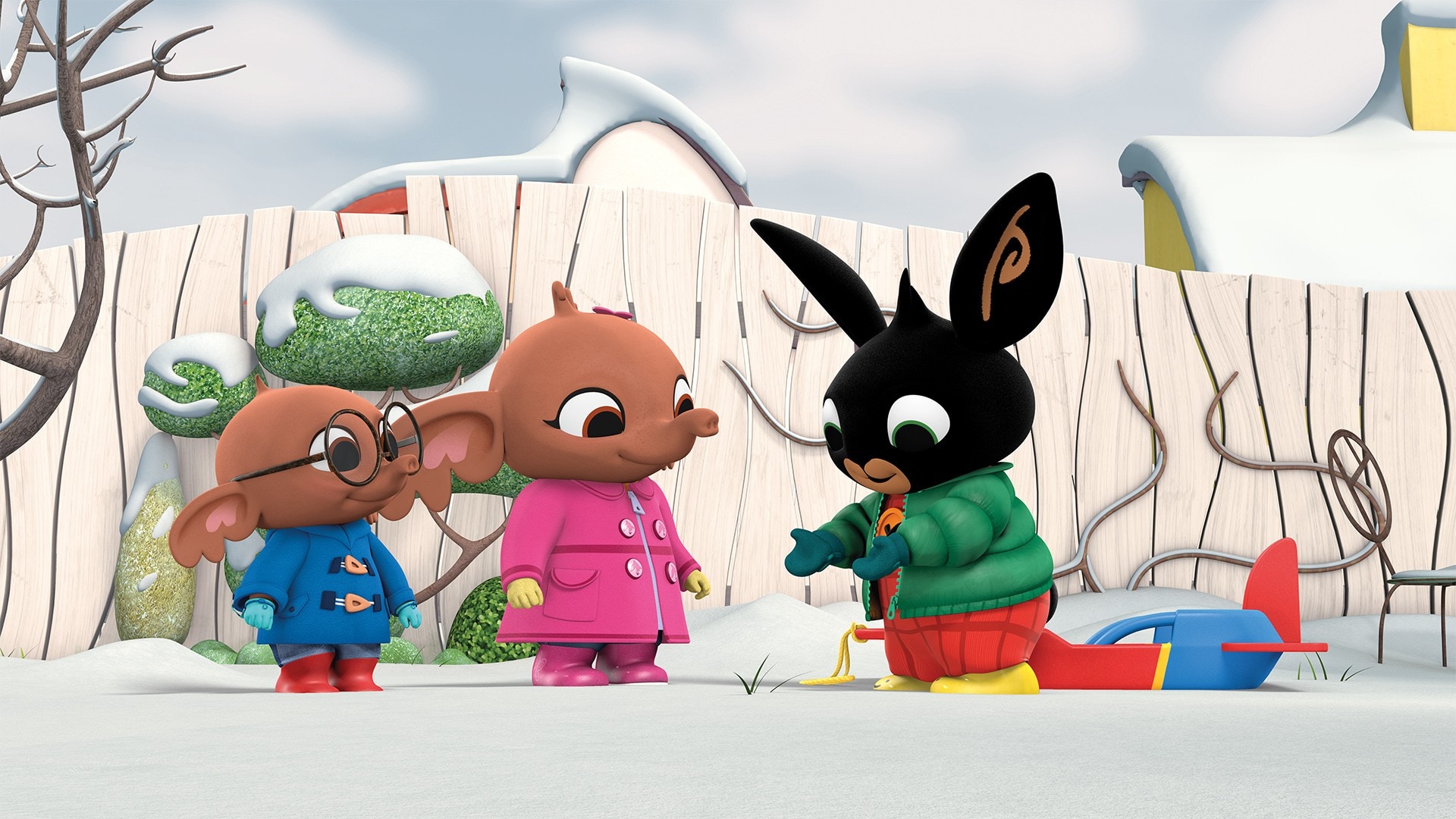 Bing, Sulla og Noah prøver den nye Hoppity rakettkjelken til Bing!