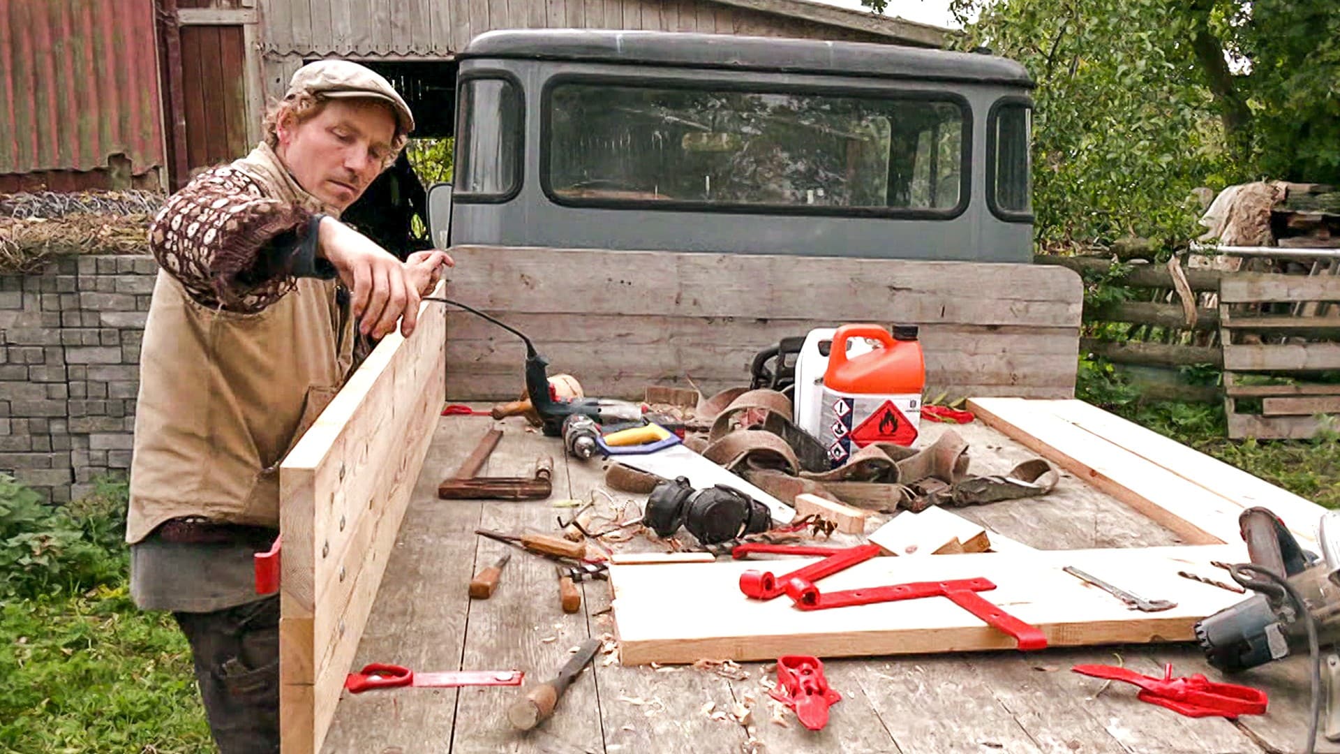 Frank må fjerne rust fra sin gamle Toyota. Og hesten Solveig har gnidd seg mot et gjerde slik at det nå må rettes opp.