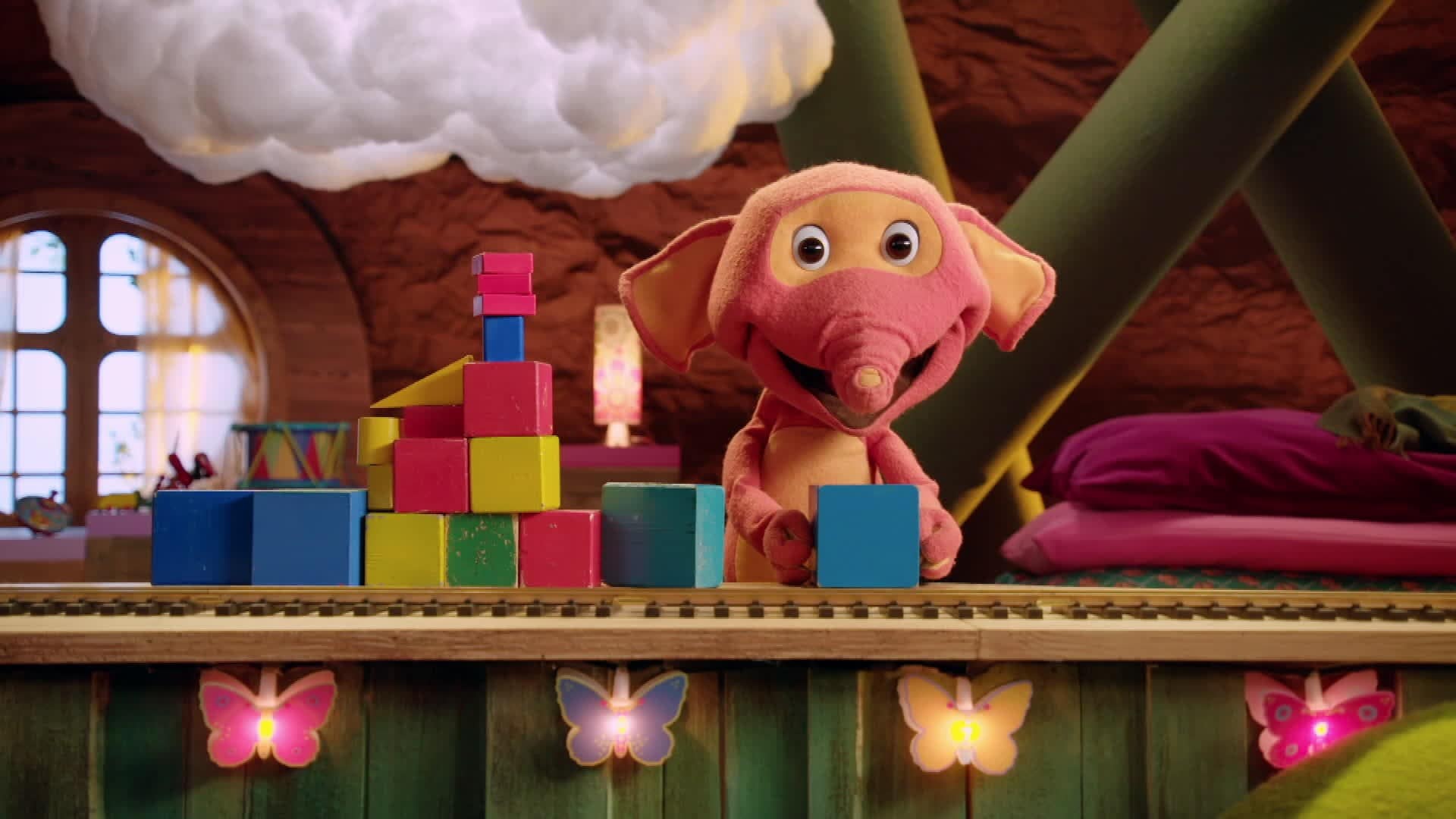 Fantorangen og Pivi leker. Pivi lurer Fantorangen.