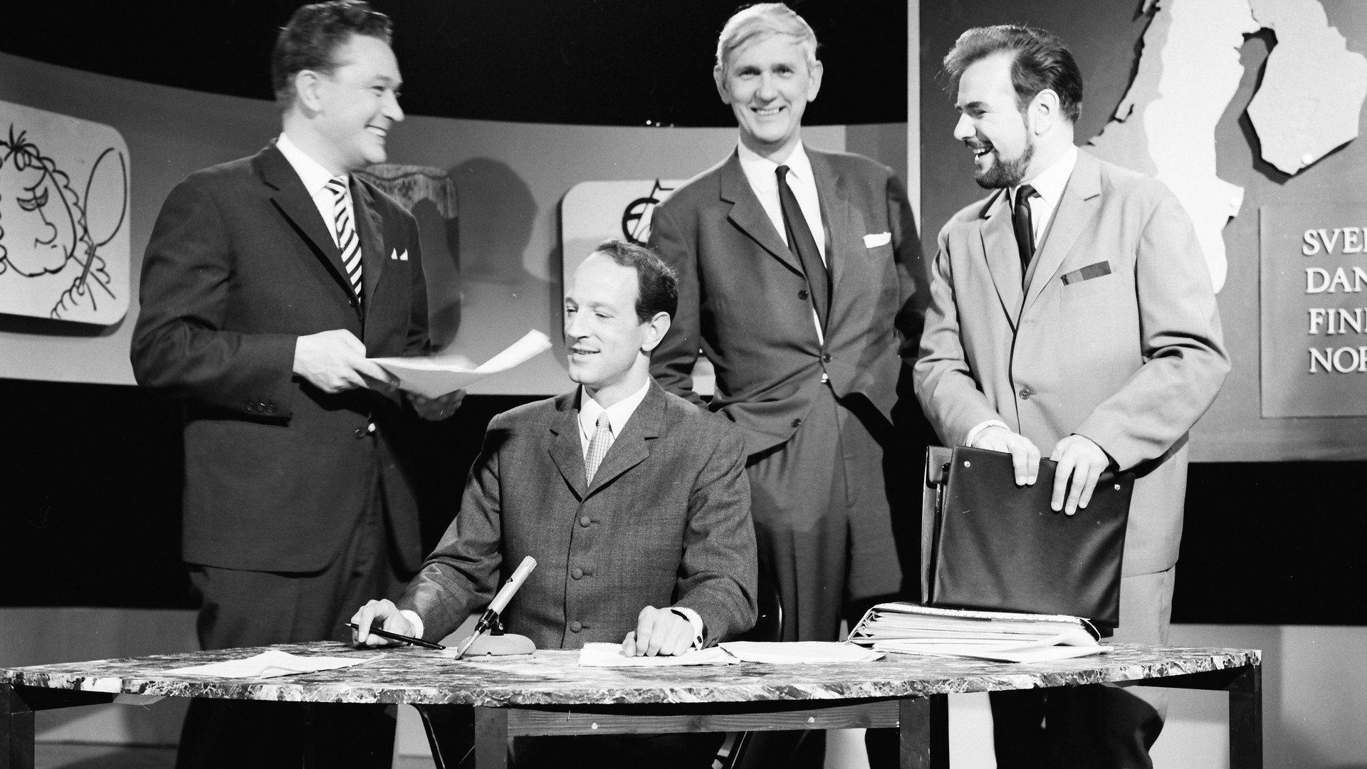 Musikalsk spørrelek mellom fire nordiske familier. Åtte programmer med overføring fra hver av de nordiske hovedsteder i regi av Nordvisjonen. Det er kun program fire og åtte (finalen) fra Oslo som er bevart i NRKs arkiv.