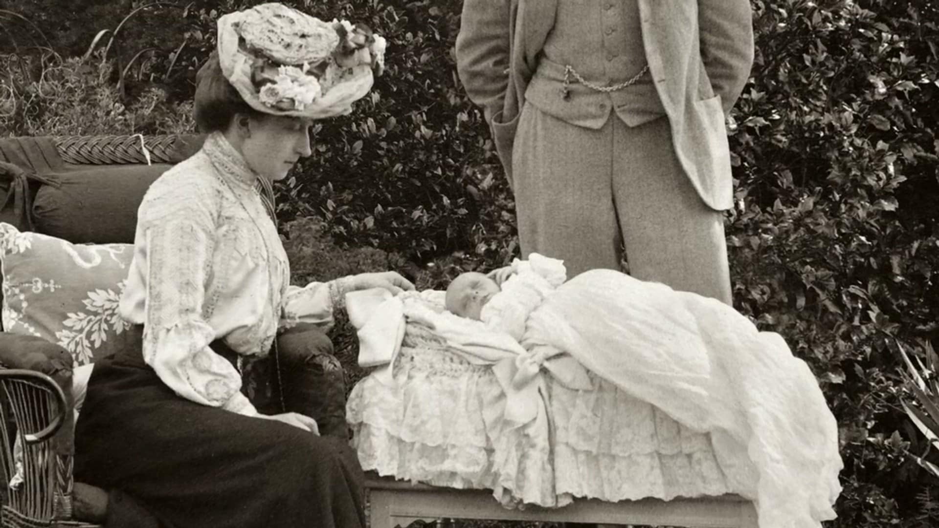 Gul silke, kniplinger og broderier. Forsiktig blir Dåpskjolen fra august 1903 hentet fram fra De kongelige samlingers magasin. Dåpskjolen er flott bevart og ser ut slik den gjorde da den ble båret første gang i august 1903. Det skjedde i den vakre slottskirken ved Sandringham Estate i England, like ved Appleton House. Den som ble døpt var den danske prins Alexander som bare to år senere skulle bli den norske kronprins Olav. Vi besøker dåpskirken St Mary Magdalene Church og ser mange private "babybilder" fra Dronning Mauds album.