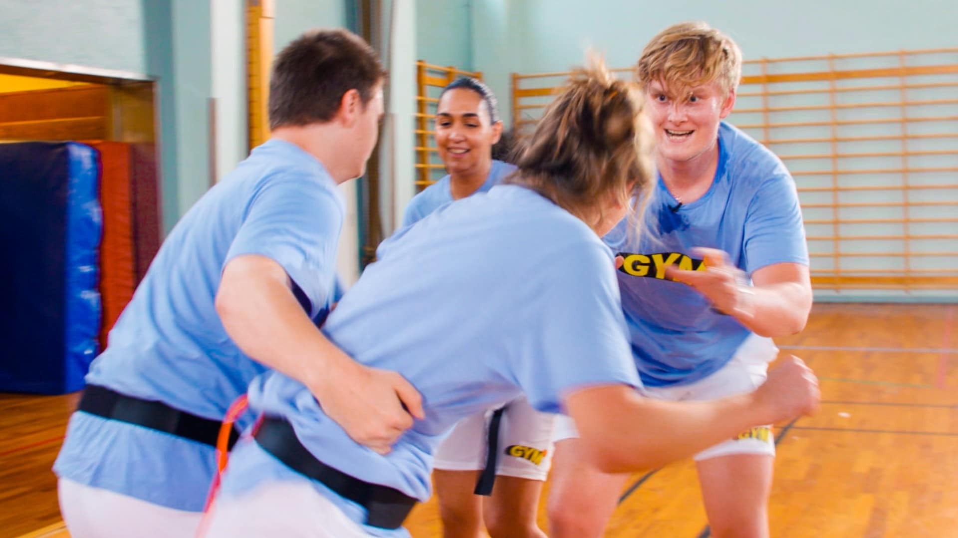 1. Første gymtimeI løpet av åtte gymtimer skal mer eller mindre kjente personer konkurrere i alt fra kanonball til fang halen. Hvorfor? For å få 6 i gym, vel!16 min