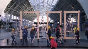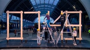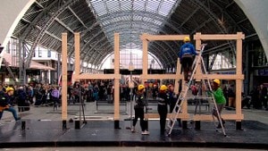Vi starter døgnet! En levende klokke bygges kontinuerlig i 24 timer på jernbanestasjonen i Bergen.