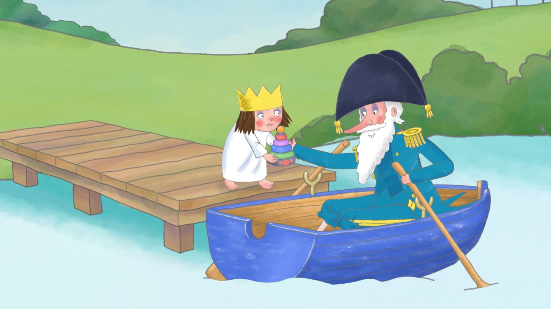 23. Nytt toalettToalett på slottet er gammelt og bråkete, så Konge og Dronning bestemmer seg for å skaffe et nytt! Men det nye toalettet er så stort at Lille Prinsesse er redd for at hun skal falle nedi det. Hva skal hun gjøre? Britisk animasjonsserie.11 min