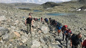 Lars Monsen starter turen over Hardangervidda minutt for minutt. I dag går han fra Dyranut ved riksvegen og til Stigstuv. Kløvhest er med når turen går langs den gamle Nordmannslepa over vidda.