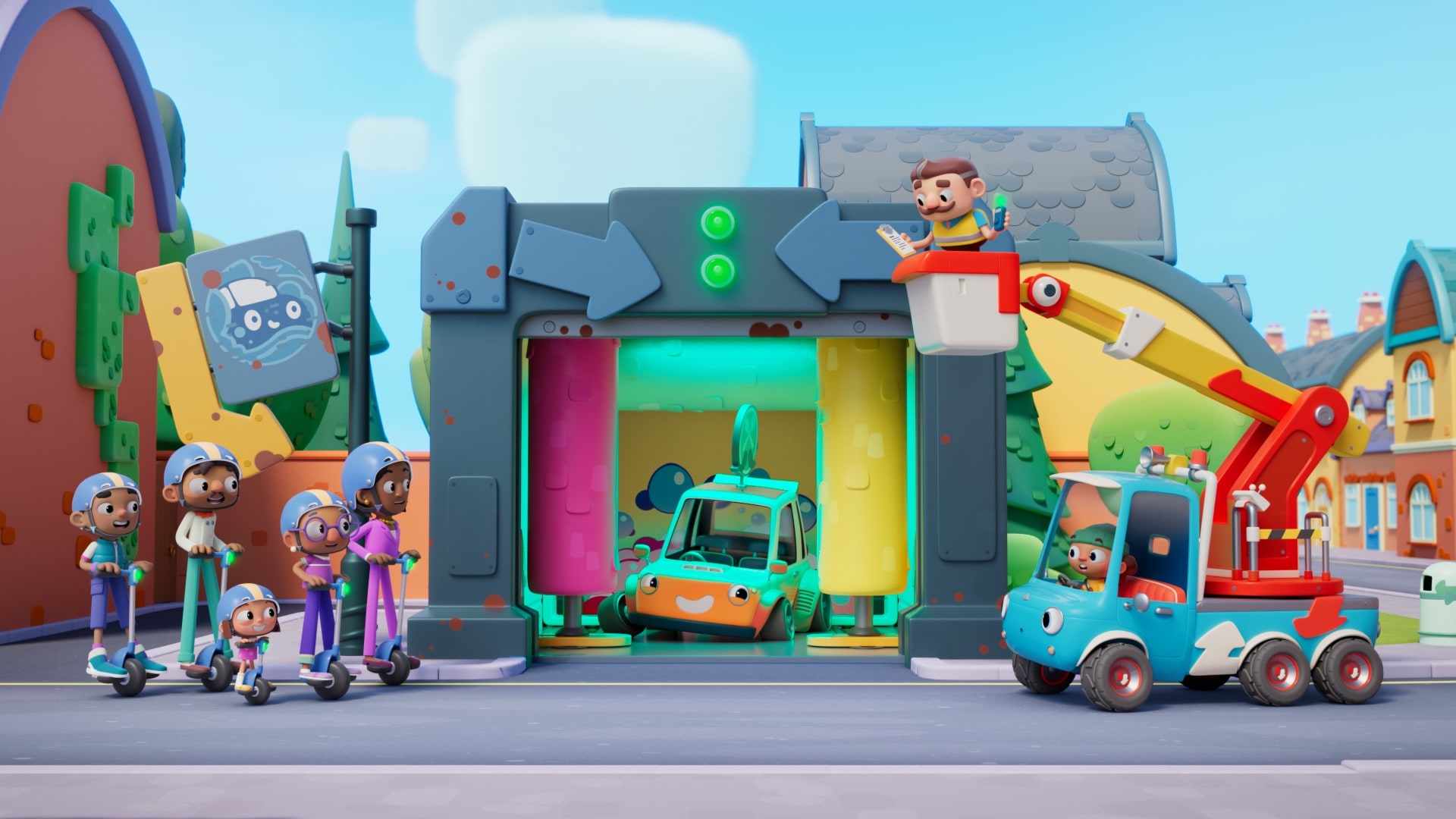 7. SparkesykkelPrebens automatiske sparkesykkeltur gjennom Bytteby går ikke som planlagt. Nå må Motor og Bo finne en måte å samle inn de løpske sparkesyklene på.10 min