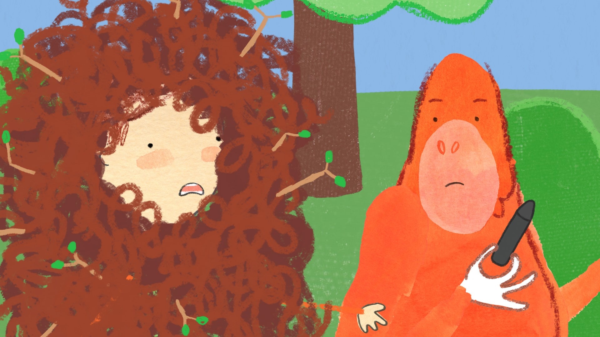 Pablo vil ikke klippe seg, så han tegner et bilde og går inn i Tegneland. Men Tang tegner et stort bustehår over hele Pablo, og advarer ham mot å bli Villmannen.