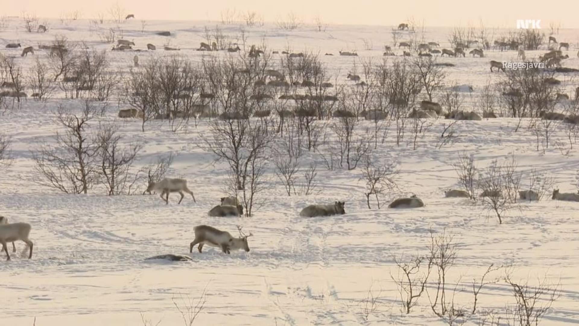 35. episodeIesjávri, følger gjeter Jovsset Ánte på scooteren, soloppgang over Finnmarks største innsjø Iesjávri, flokken beveger seg utstrekt over Iesjávri mot Ginusvárri over Vahttánjárga, reprise av Ronald og Aslak Ante - following owner and herder Jovsset Ánte on his snowmoble, sunrise at Finnmarks largest lake Iesjávri, the herd is migrating in a wide formation across the icy lake Iesjávri towards Ginusvárri across Vahttánjárga, rerun of Ronald and Aslak Ante.2 t 8 min