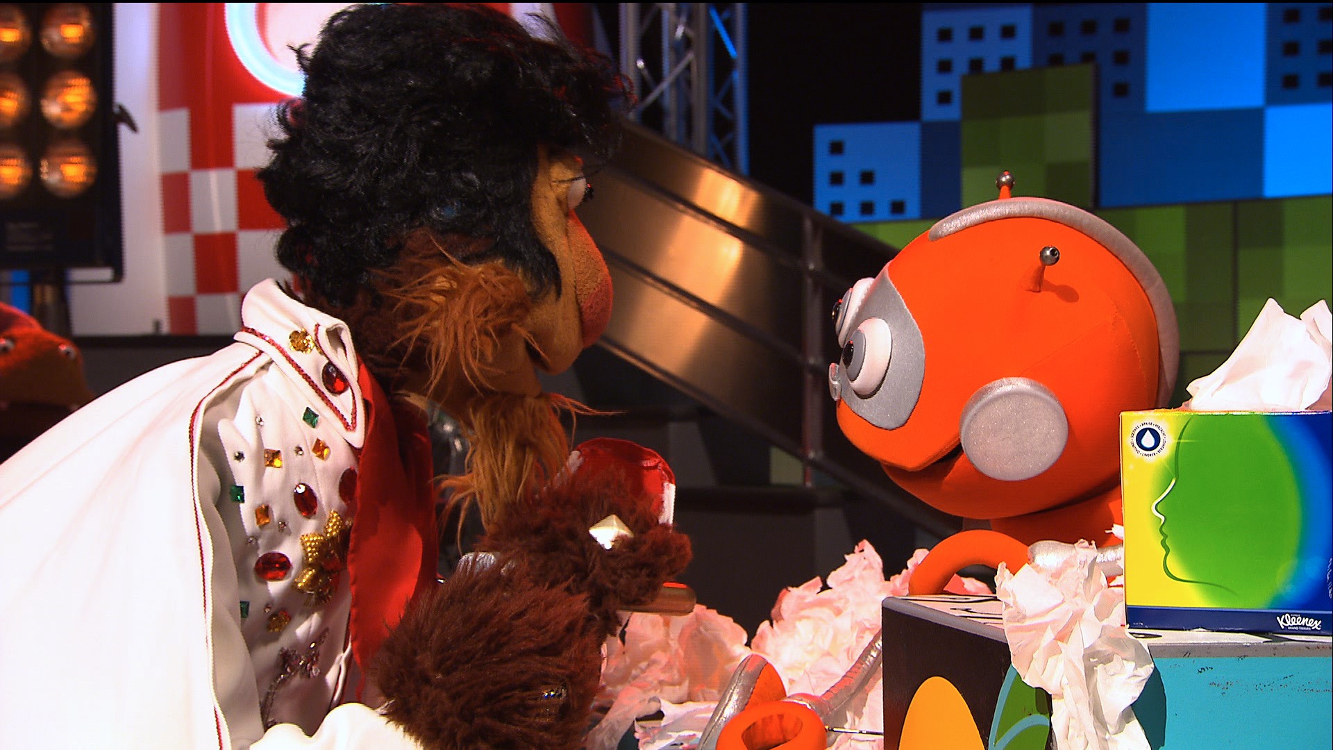 Norsk dukkeserie. (14) Rodde og Kikkan har sluttet å være leketøy og har fått sitt eget TV-show! Rodde er redd for at han har såret Kikkan, og vil ordne opp med å synge en sang til bestevennen. Programleder: Rodde (Håvard Lilleheie) og Kikkan (Christian Eriksen)